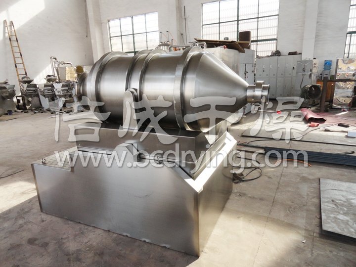 EYH二維混料機的轉(zhuǎn)筒可同時進行二個運動,一個為轉(zhuǎn)筒的轉(zhuǎn)動,另一個為轉(zhuǎn)筒隨擺動架的擺動。被混合物料在轉(zhuǎn)筒內(nèi)隨轉(zhuǎn)筒轉(zhuǎn)動、翻轉(zhuǎn)、混合的同時,又隨轉(zhuǎn)筒的擺動而發(fā)生左右來回的摻混運動,在這兩個運動的共同作用下,物料在短時間內(nèi)得到充分的混合。EYH二維混料機適合所有粉、粒狀物料的混合。