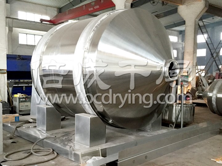 3. 運轉(zhuǎn)時,裝料筒體繞中心軸做回轉(zhuǎn)運動(簡稱“一維運動”),而筒內(nèi)物料作三維運動,故物料的混合精度可與二維,三維運動混合機相媲美。